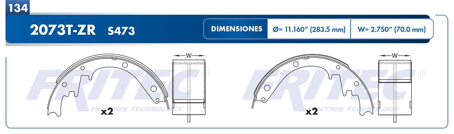 Longitud del material de fricción zapata secundaria(pulg) 12125