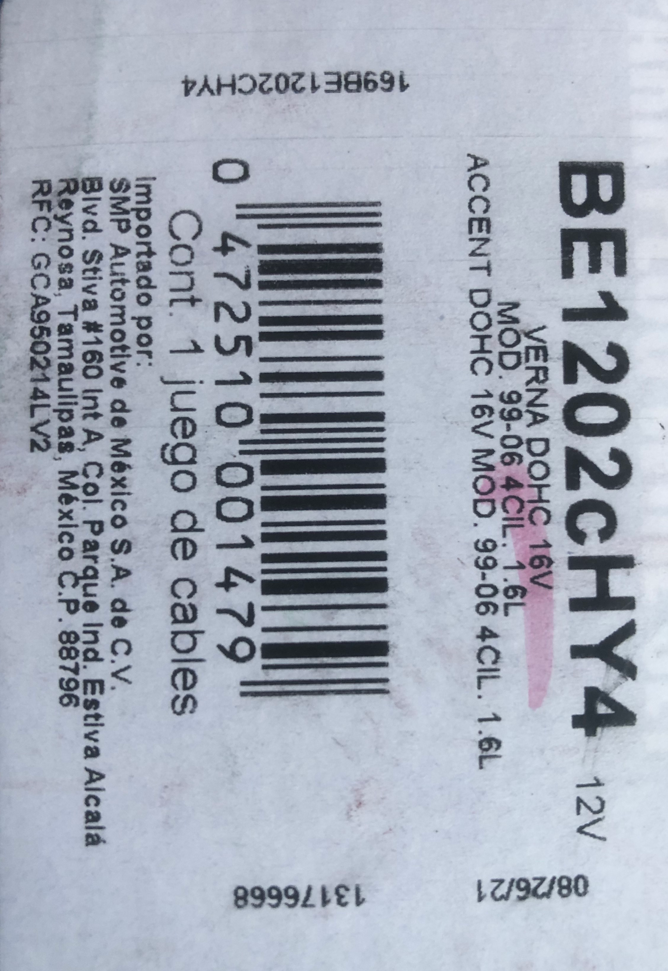 / Cables de Bujia Beru Verna 1.6-Atittud 1.4 4cil. Doch 2 Arboles De Levas