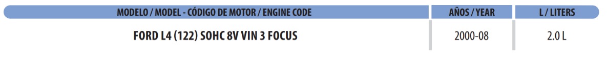 | Ford | Focus | ZTW | 2.0 L 1989 4 – DOHC 16 | 2003 |