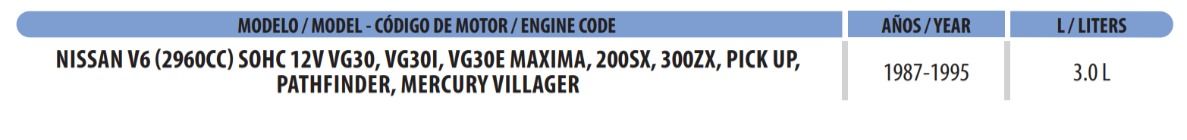 | Mercury | Villager | GS | 3.0 V – 6 – SOHC 12 | 1995 |