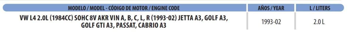 VolkswagenJettaGL2.0 L 1984 4 ABA SOHC 81993