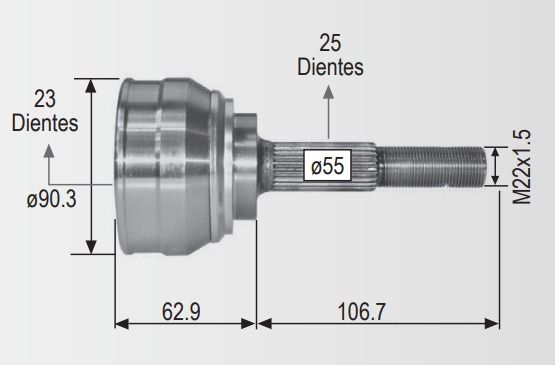 Espiga Nissan Sentra 1.6 S/Abs 91-99 23int.25ext