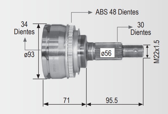 Espiga Toyota Camry Solara 92-96 C/Abs 30ext 34int 48abs