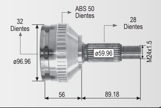 Espiga Honda Accord Civic 3.3 94-97 C/Abs 32int 28ext