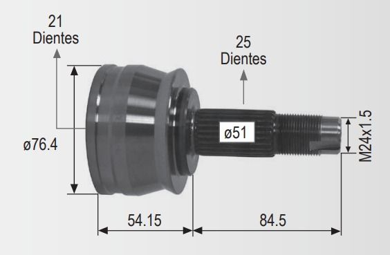 Espiga Fiat 500 1.4 10-15 25int 21ext