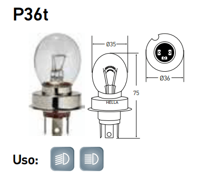 Foco 6245s 12v 45/45w P36t Hella - Imagen 2